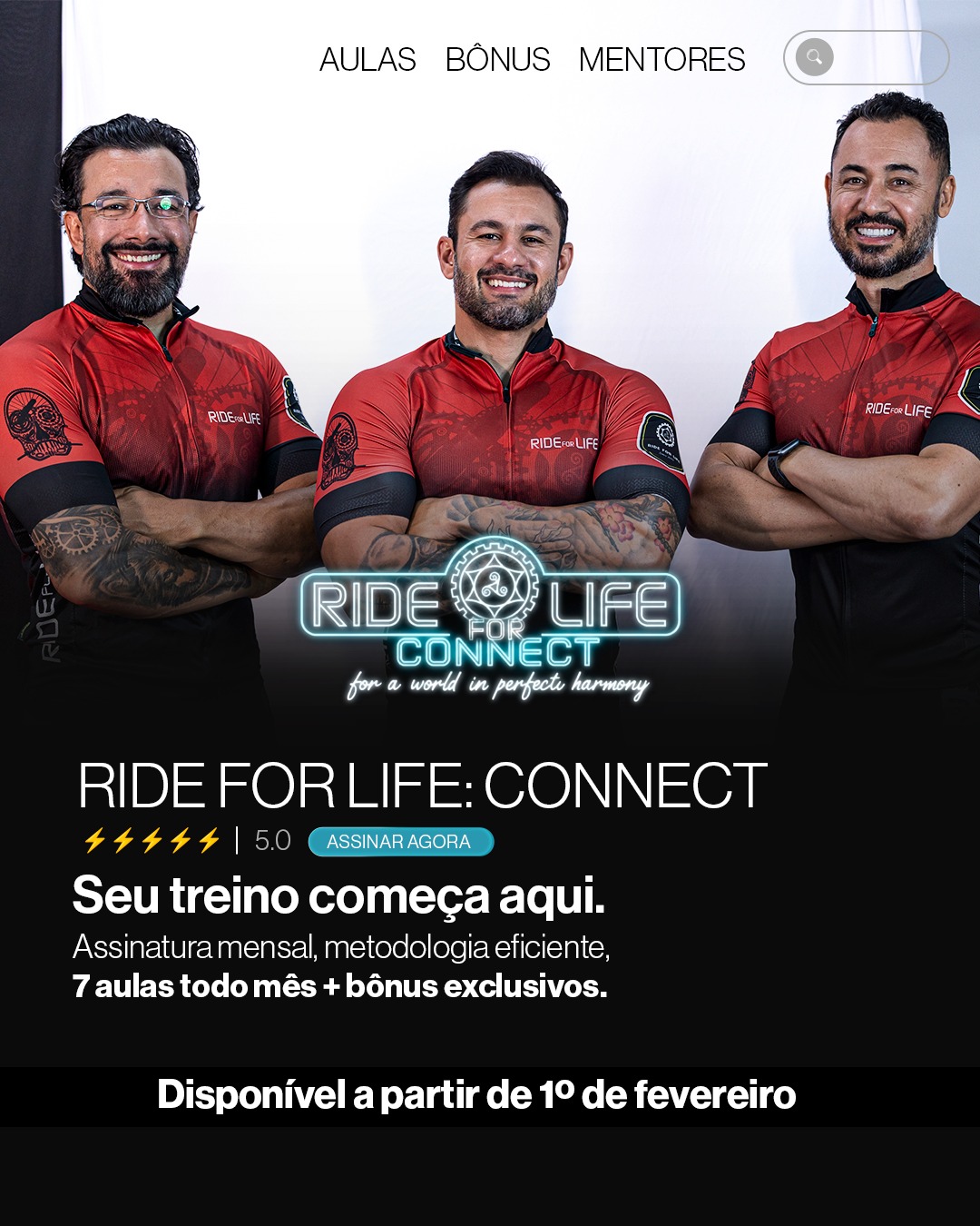 Aqui você encontrar aulas de ciclismo indoor gravadas pelos professores da equipe Ride For Life. Masters Trainers ( Ailton Moreira, Marcão e Fred Reis). Assinando a Plataforma RIDE FOR LIFE CONNECT você terá acesso ao que tem de melhor em ciclismo indoor, aulas gravadas com qualidade de som e imagem digital além descontos especiais nos eventos organizados pela Ride For Lilfe.